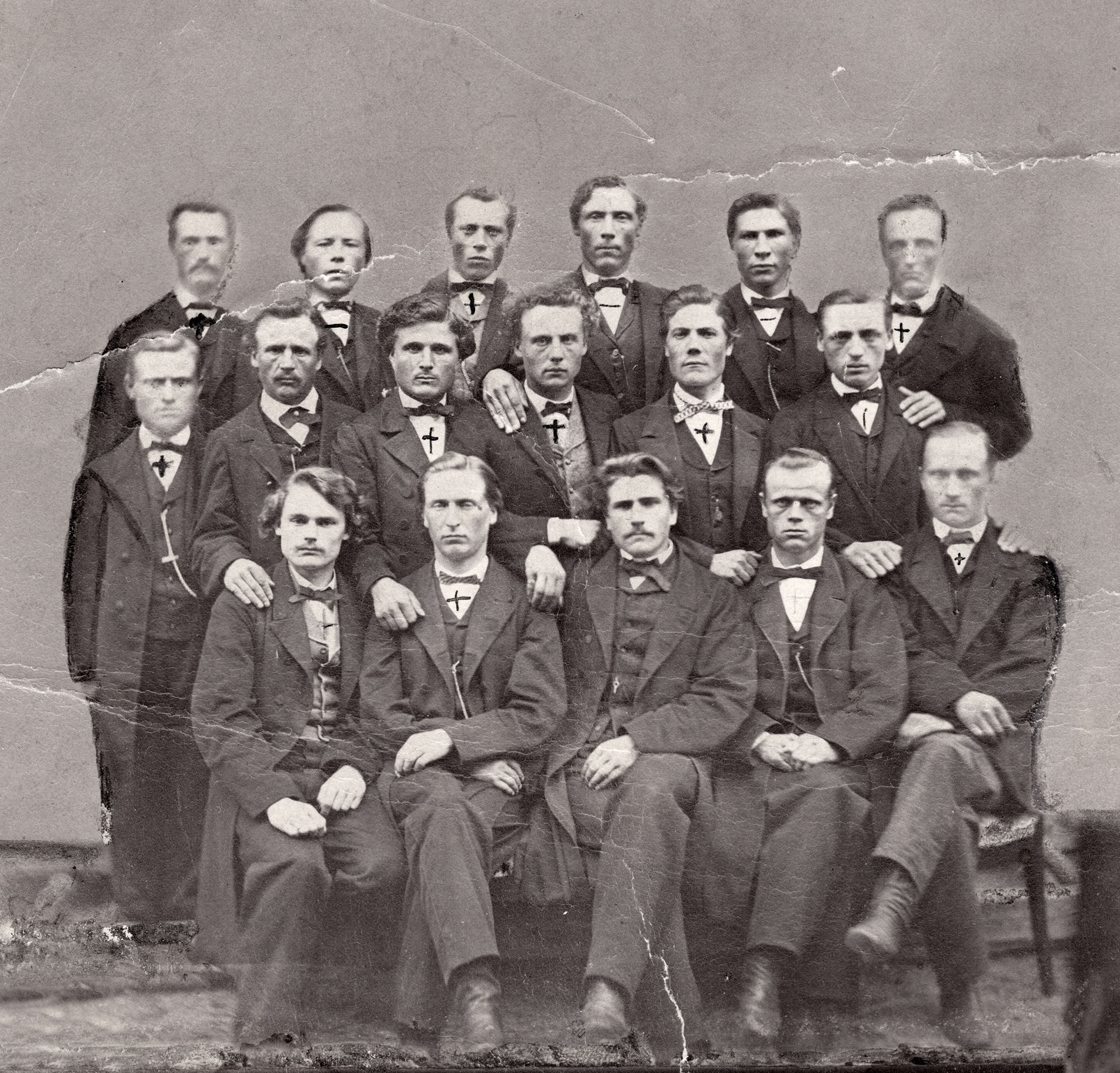 Jyväskylän seminaarin miesoppilaita v. 1865 tai 1866. Kuvassa ovat vasemmalta takarivistä alkaen: August Varvikko, Matti Kauppinen, Juho Kallén, Kalle Sormunen, Frans Tammi (Ekqvist), Herman Toivonen, Frans Finnberg, Matti Tuomikoski, Kustaa Rekolainen, Kalle Penttilä, Karl Lindgrén, Edvard Skogster, Gustaf Lönnbeck, Matti Markkunen, Kustaa Gestrin, Simo Eerikäinen ja Kaarle Saarinen.