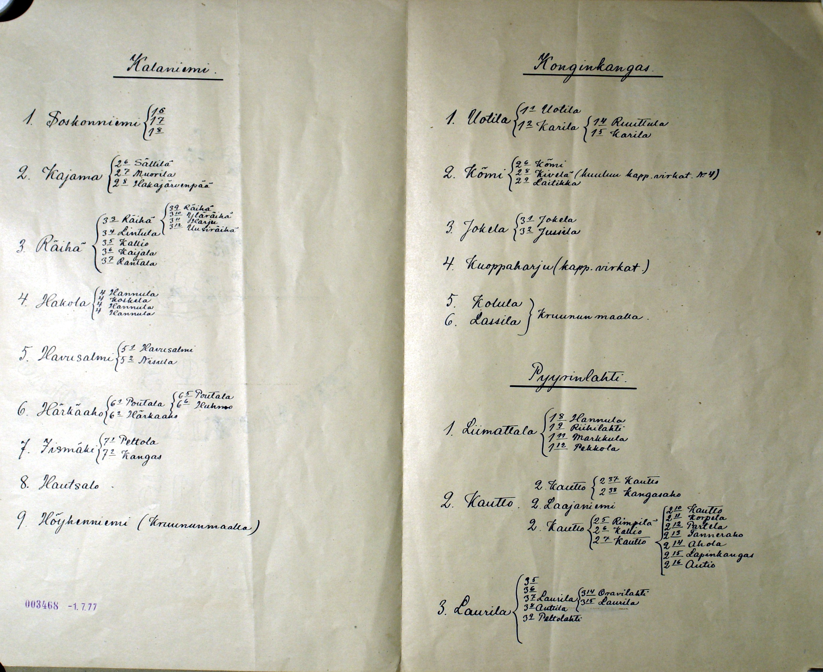 Konginkankaan alueen tilusluettelot (Kartta)