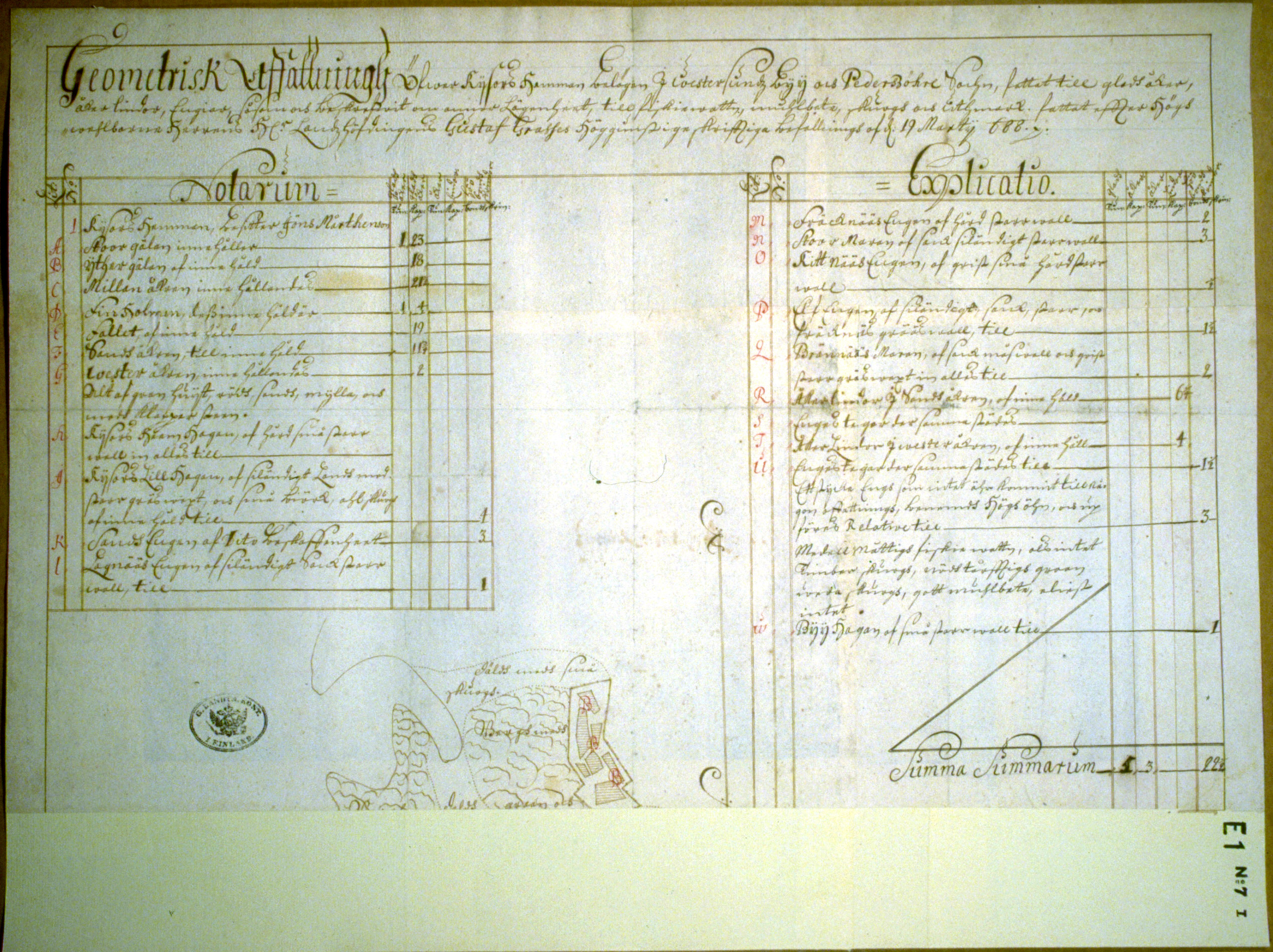 GEOMETRISK AFFATTNINGH öfwer Kiisors hemman belägen J Öestersundz byy och Pedersöhre Sochn, fattat till gled åker, åkerlindor, Engiar, såsom och beskrefwit o manner Lägenheet, till